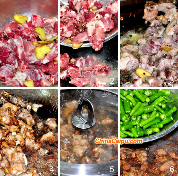 2.油燒至5成,加入排骨煸炒。