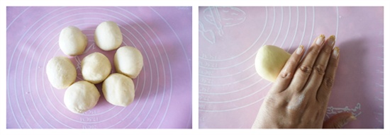 5把面團分成大約75克的七個面團松弛10分鐘。