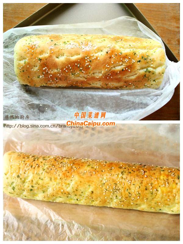 2、面包表面除了撒白芝麻以外,撒黑芝麻當然也可以哈。喜歡蔥味的朋友還可以撒一些蔥花,使面包帶有香蔥的口味。