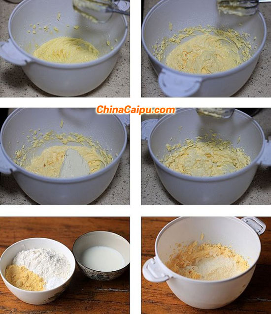 5、中筋面粉、玉米粉、泡打粉、小蘇打、鹽混合;