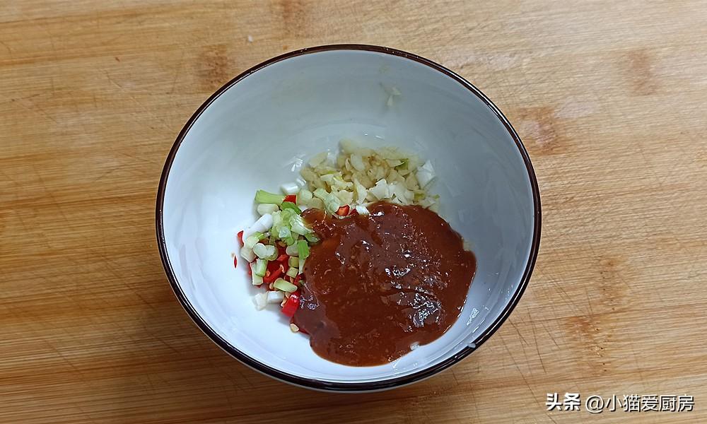 【制作調(diào)料】:大蒜5-6瓣、小米辣3-4個、香蔥1根、蒜蓉辣醬1勺、鹽少許、生抽3勺、老抽小半勺、蠔油1勺、雞精1勺