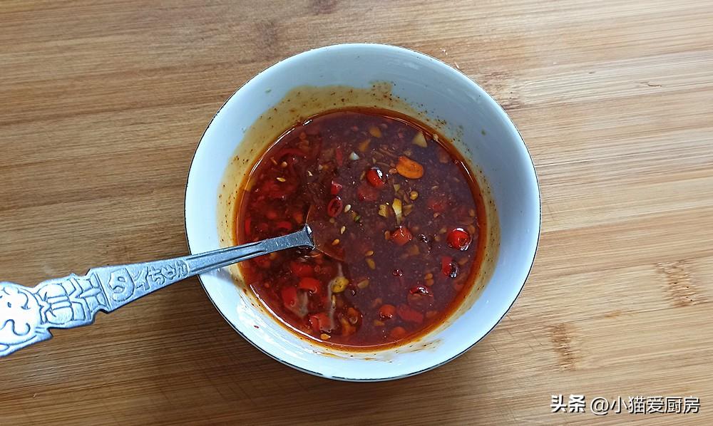 【制作調料】:大蒜3-4瓣、小米辣2-3個、白糖少許、雞精1勺、生抽2勺、米醋1勺、辣椒面1勺、蠔油1勺