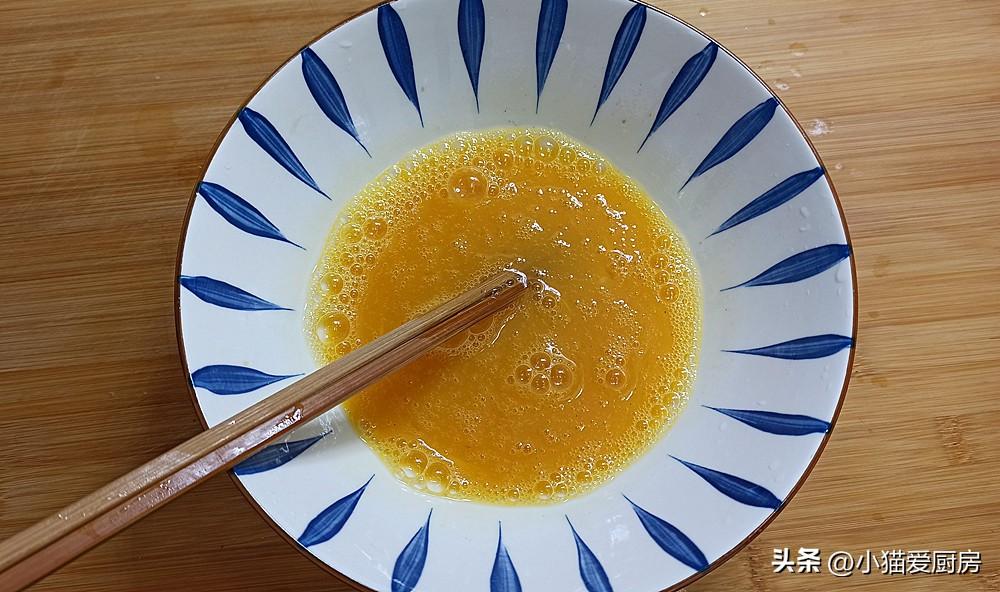 【步驟二】:把雞蛋打入碗中,放入一勺鹽和一勺胡椒粉,再用筷子充分攪拌均勻成蛋液。