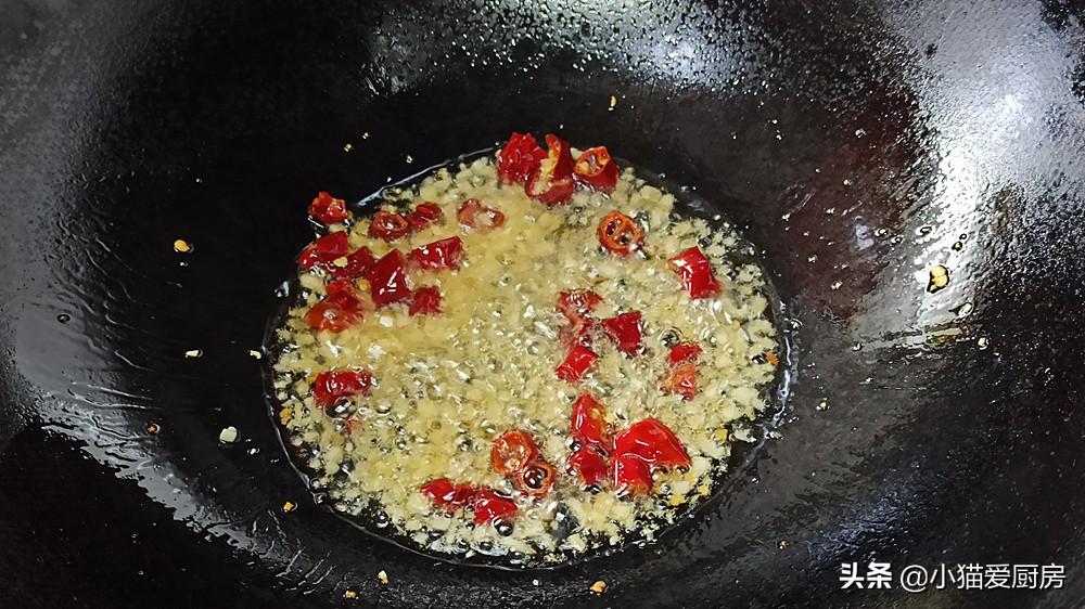 (5)炒這道菜不要放過多的調料,放點大蒜和干辣椒作為香料就可以,然后放點鹽和雞精調味就可以,其它的調料不要放,否則會搶味道,就不好吃了。