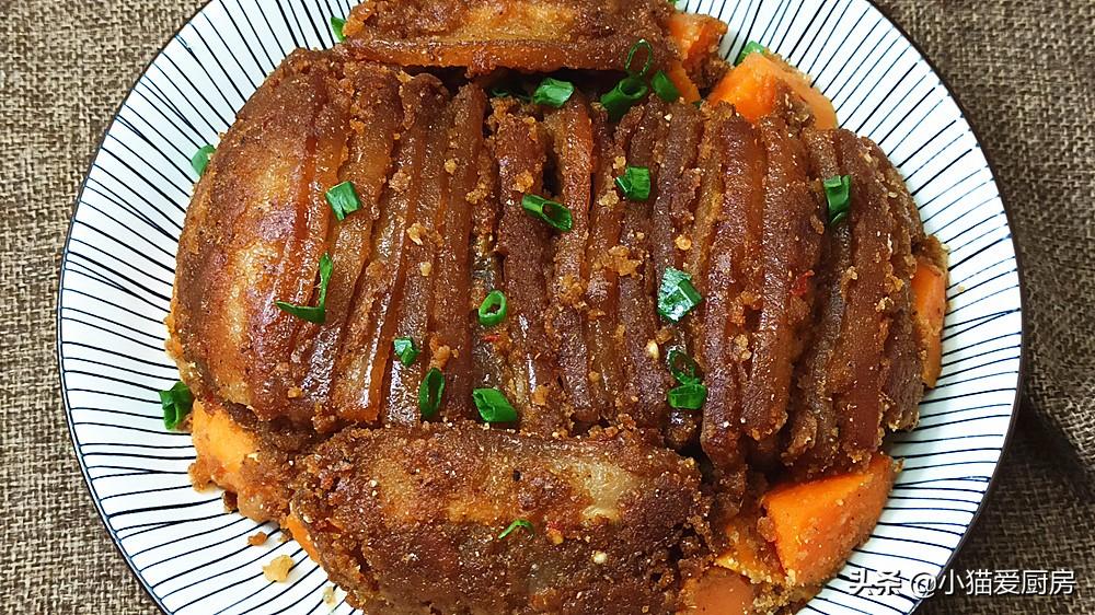 【制作主料】:五花肉1斤、蒸肉粉150克、紅薯1個