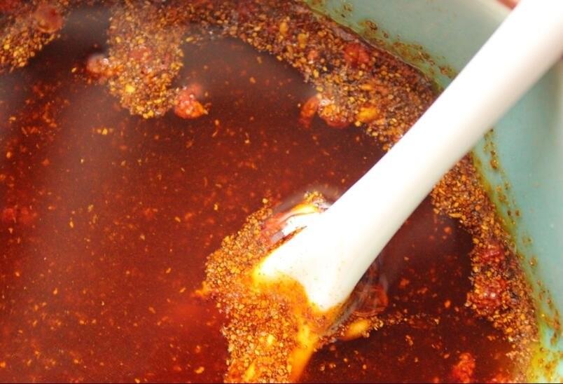 4、干辣椒和花椒用熱油煸香時(shí),要用小火,用大火容易燒糊干辣椒和花椒。