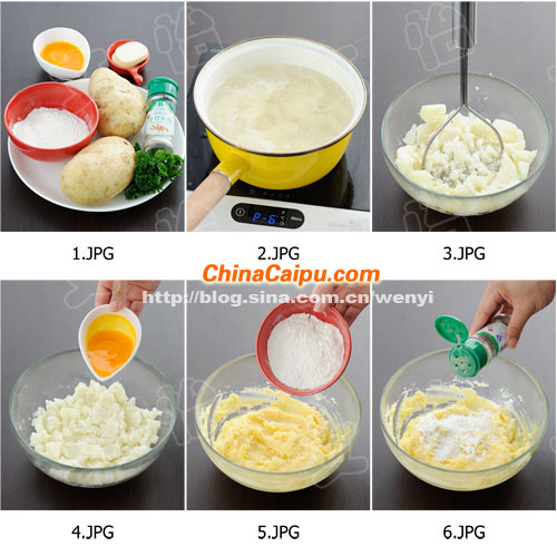 2、加面粉時,要分次少量的添加,每次加過后,要輕輕的揉,如果看到土豆能揉成團,就馬上停止,不要再加入面粉了。配方中的面粉數(shù)量僅為參考數(shù)量。