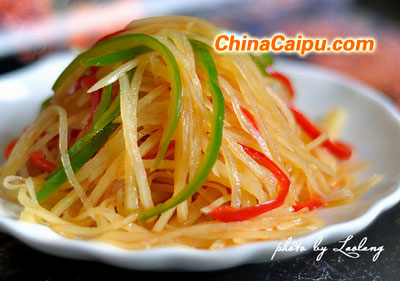 [材料]:土豆,青紅椒、精鹽、紅油、涼拌醋、醬油、香油