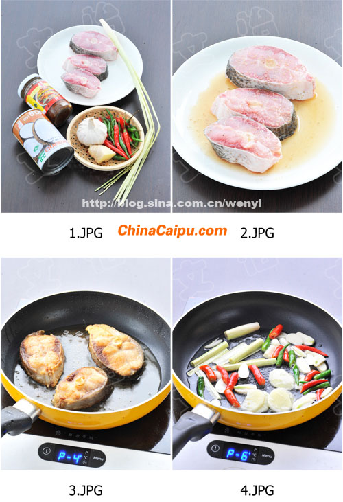 原料:草魚(或鯉魚)3―4片 香茅草1根 小紅辣椒4根 小青辣椒4根 大蒜5瓣 姜1小塊 黃酒4湯匙(60ml) 白胡椒粉1/2茶匙(3克) 冬陰功醬2湯匙(30克) 清水100ml 椰漿4湯匙(60ml)