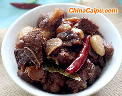 材料:排骨,啤酒,生抽,老抽,八角,桂皮,香葉,干紅辣椒,鹽,糖,生姜,大蒜
